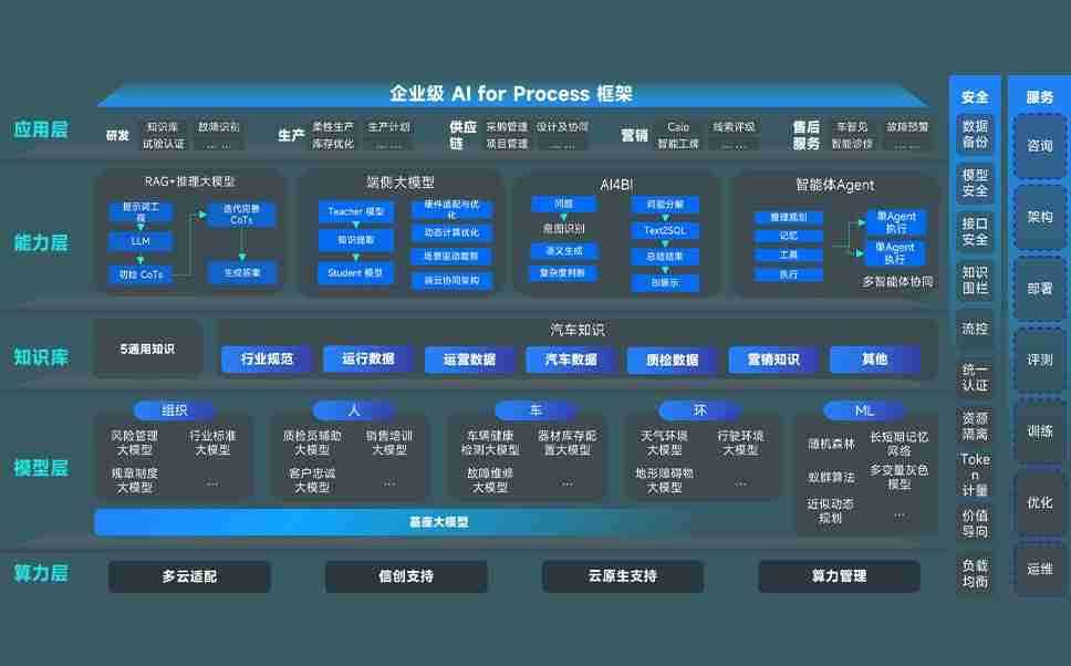 端到端的一站式AI工作空间深度融合了从企业战略规划到日常经营的全流程业务板块,,,定向解决车企内部领域多、、部门多、、、链条长、、、、场景碎片化等难题,,,,支持车企快速构建以AI为核心的生产力写作体系,,,,实现任务执行与AI能力的无缝集成与交互